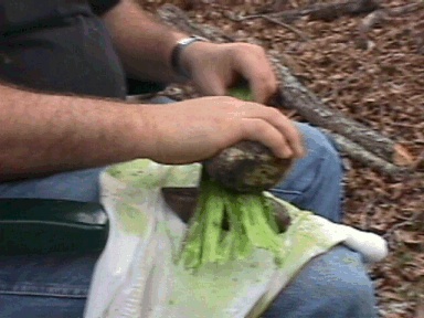 | Be sure and put a towel or cloth under the work. The leaf gets pretty juicy and lots of wet pulp comes off. |