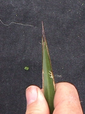 | The first step is to cut away the sharp saw tooth edges so you can handle the leaf safely. Leave the sharp tip on the leaf. |