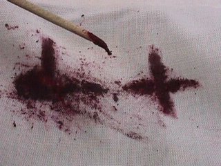 Now lets try dying some cotton cloth. This is just using three or four bugs. If I wanted to I could have squished several hundred bugs and dyed a larger area.