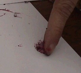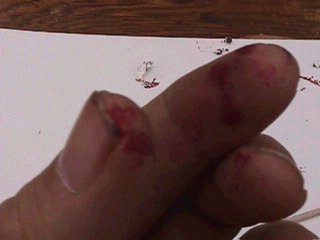 I got a bunch of the dye on my fingers. Sure looks like blood!! But it isn't. I hope it washes off. (it does)