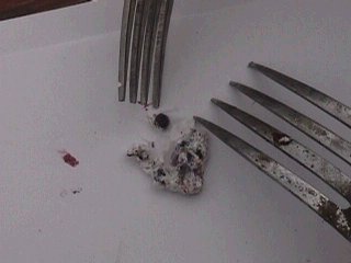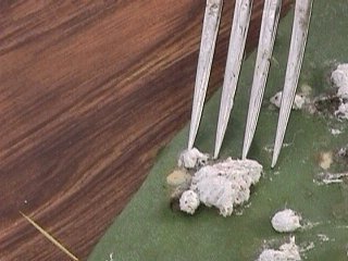Now lets take a closer look at these beetles. I am using an old fork to avoid the spines and pull off one of the puffs.